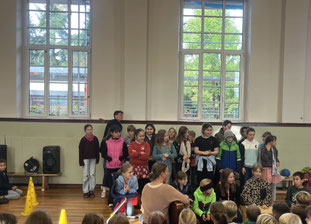 Unter der Leitung von Frau Dinkelacker stimmte uns die Klasse 4c mit dem "Schulstartsong" auf das neue Schuljahr ein. Im Anschluss daran hießen wir die neuen Erstklässlerinnen und Erstklässler in unserer Schulgemeinschaft willkommen. Die Drachen, Koalas, Frösche und Eulen waren sichtlich stolz und freuten sich über den großen Applaus. Den Zeitpunkt des Schuljahresanfangs nutzten wir auch, um aktuelle Themen unseres Zusammenlebens zu wiederholen und zu besprechen.